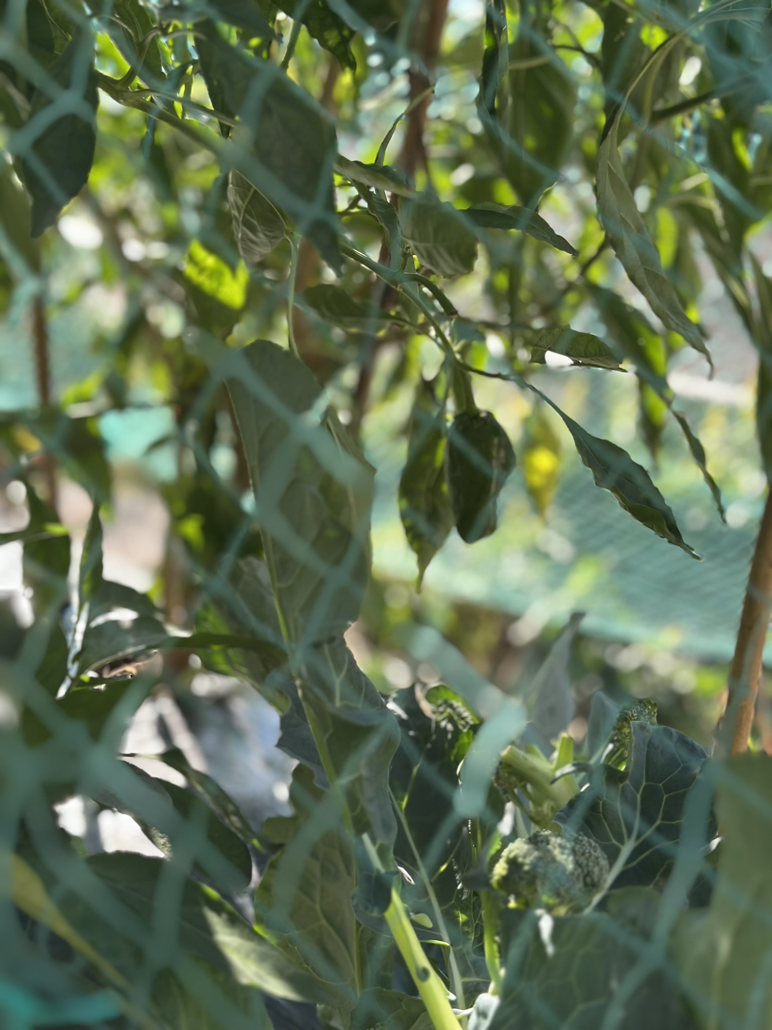 畑にはピーマンやブロッコリーがなっています。